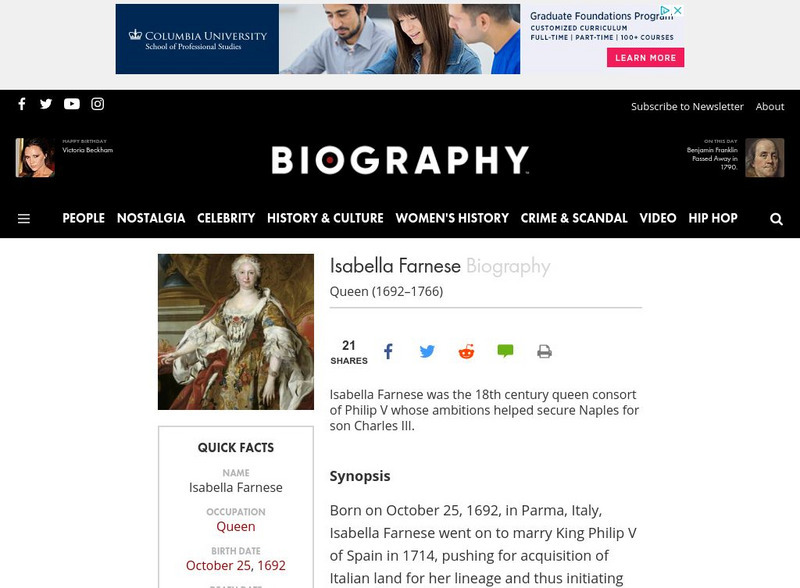 This resource offers a very brief biographical entry on Queen Isabella of Spain, also known as Isabella the Catholic.