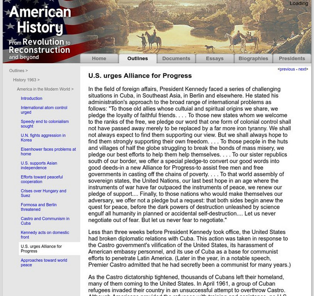 In the field of foreign affairs, President Kennedy faced a series of challenging situations in Cuba, in Southeast Asia, and in Berlin. In 1961, he initiiated a program called the Alliance for Progress aimed to establish economic...