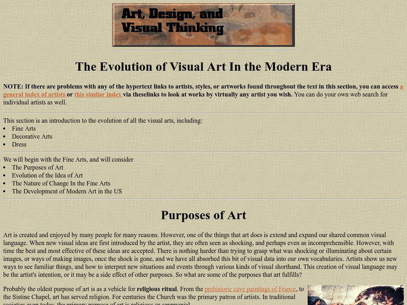 Cornell University: Art, Design, and Visual Thinking: Purposes of Art