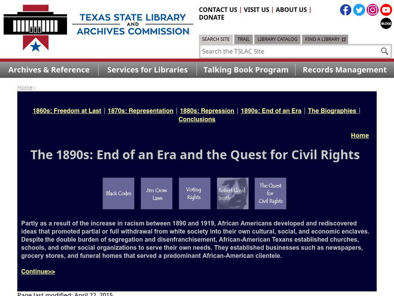Texas State Library and Archives Commission: The 1890s: End of an Era and the Quest for Civil Rights