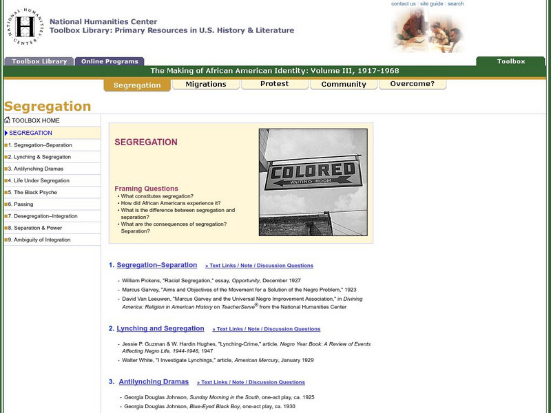 National Humanities Center: Toolbox Library: African American Identity: Volume Iii, 1917 1968: Segregation