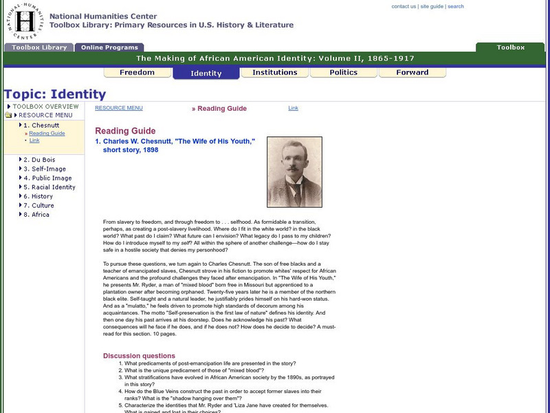 National Humanities Center: Toolbox Library: Charles W. Chesnutt, Making of African American Identity: V. 2