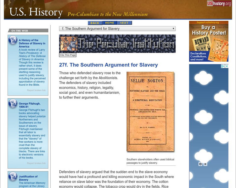 U.s. History: The Southern Argument for Slavery