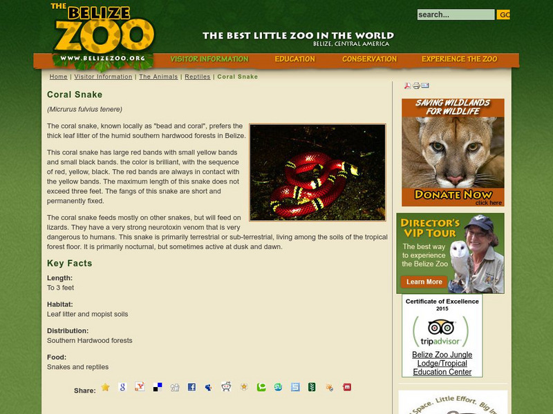 A brief overview of the Coral Snake from the Belize Zoo. Video, and additional photos are linked from the main page.