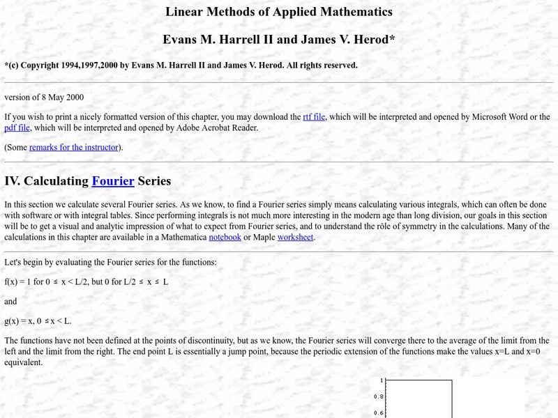 The authors provide problems involving the calculation of Fourier series and then take a stepwise approach to solving them.