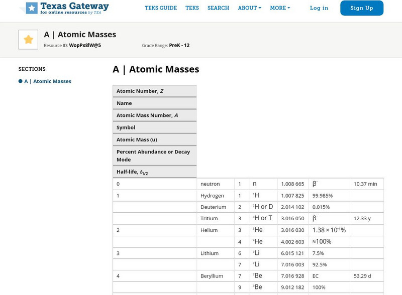 [Free Registration/Login may be required to access all resource tools.] In the following online tutorial students will be asked to define atomic number, mass number and understand how isotopes differ from one another. They will be able...