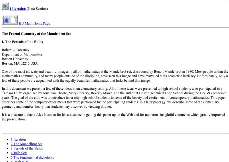 This site provides some links to activities and lesson plans dealing with fractals and chaos.