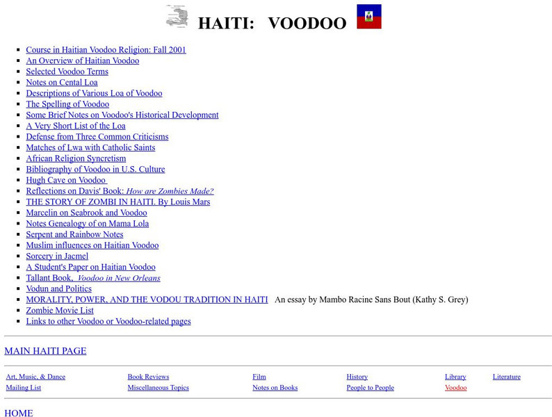 This resource offers over twenty pages of essays and notes on different aspects of Voodoo, a primary religion in Haiti. Read about the beliefs and history of Voodoo here.