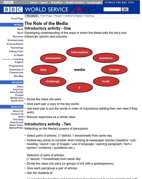 The media plays a significant role in the improving of the quality of life for children around the world. This activity draws students' attention to the role the media plays and helps them explore the significance and impact of this role.