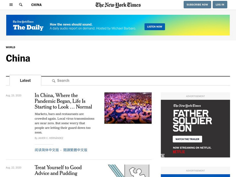 [Free Registration/Login Required] This site provides links to the most recent articles published about China.