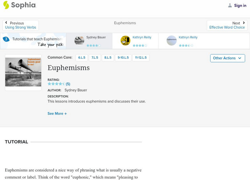 This lessons introduces euphemisms and discusses their use. It is 1 of 3 in the series titled "Euphemisms."