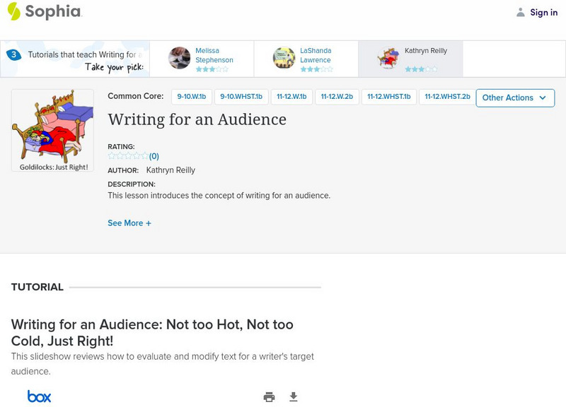 A slideshow introducing the concept of writing for an audience. It is 3 of 3 in the series titled "Writing for an Audience."