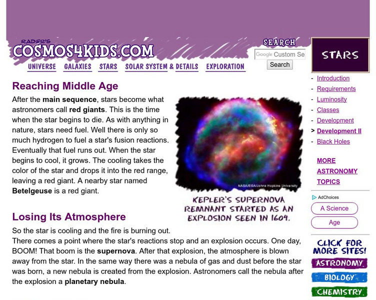 This site explains the stages a star goes through from a main sequence to death. This site includes a video.