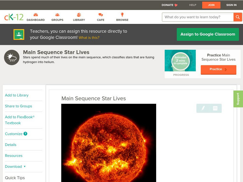 [Free Registration/Login may be required to access all resource tools.] Examines the main sequence of the star's life cycle.