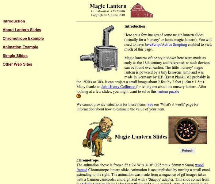 The site includes images from Magic Lantern slides, a little background on Nursery Lanterns and learning games and trivia information. Check out the links to other sites too!
