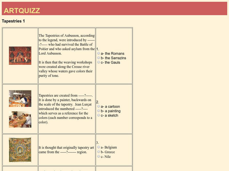 An illustrated quiz on tapestries, including questions about famous tapestries.
