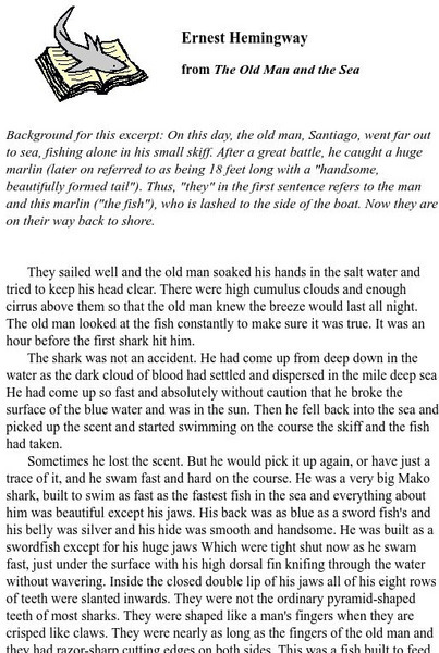 Read the excerpt from the text that details Santiago's encounter with sharks. No additional information is given. Part of a larger site about sharks in literature.