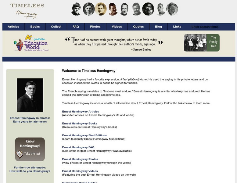 Lots of information on Ernest Hemingway's life and works can be found on this site, including biographical details, pictures, quotes, and a Hemingway FAQ.