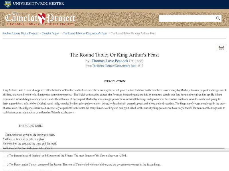 Annotated full text of Peacock's story "The Round Table; or King Arthur's Feast."