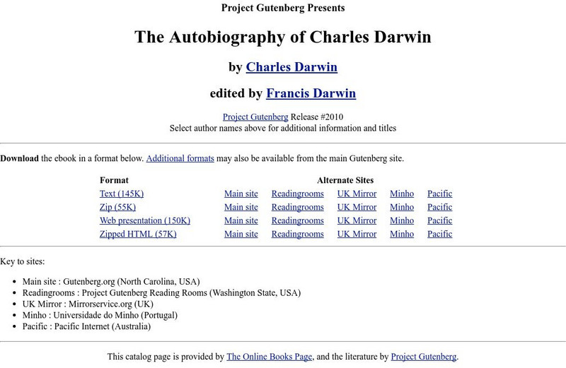 This site provides the text of "The Autobiography of Charles Darwin" by Charles Darwin.