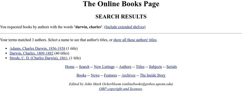 The Digital Library provides links to the texts of a dozen of works by Charles Darwing including "On the Origins of Species."