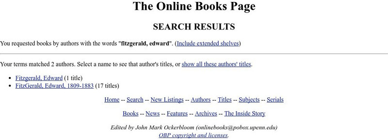 The Digital Library provides links to the texts of seven of Edward Fitzgerald's works.