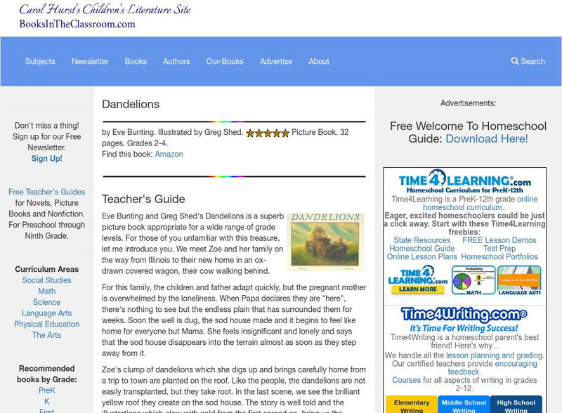 This site on the book "Dandelions" by Eve Bunting, includes a review of the book, a listing of things to notice and talk about, activities related to the book, other related books, and links to other resources.