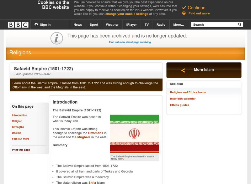 This page comes from the University of Calgary and thoroughly describes the Safavid Empire as well as provides a clickable map detailing the areas included within their empire.