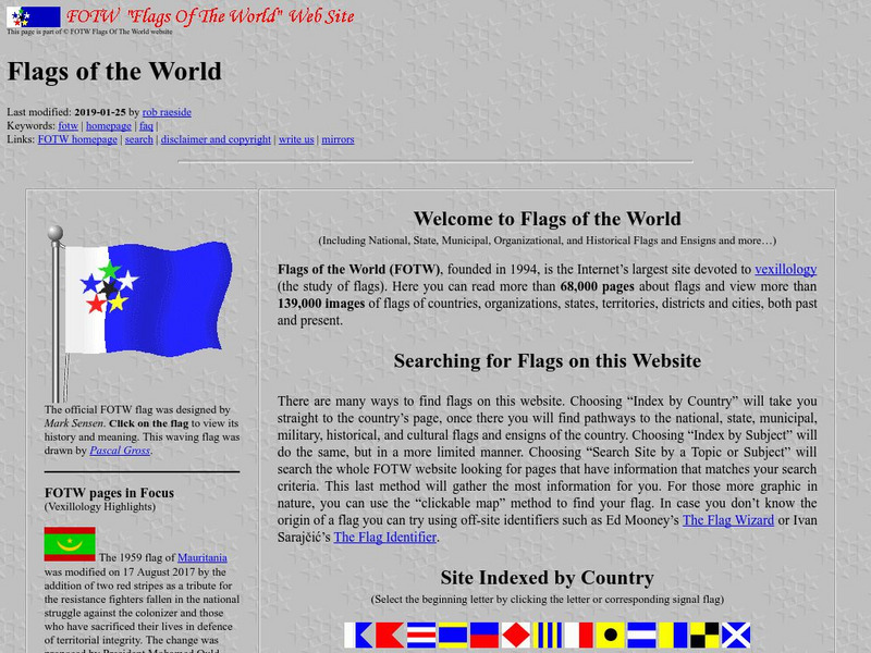 Contains a link to the flag of every country in the world. Each contains a picture of the flag and helpful supplemental information. Use for easy research on the flags of the world.