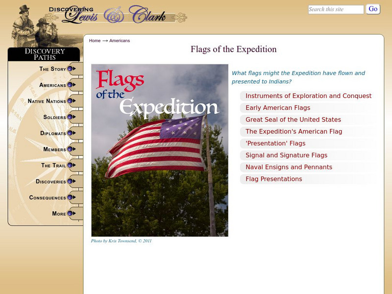 Discusses the importance of flags in representing the identities of groups and countries. Presents a collection of early American flags, the Great Seal of the United States, the flags carried by the Lewis and Clark expedition, signal and...