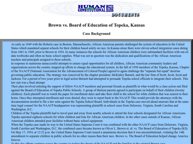 Provides a background summary for the Brown vs. the Board of Education of Topeka case.