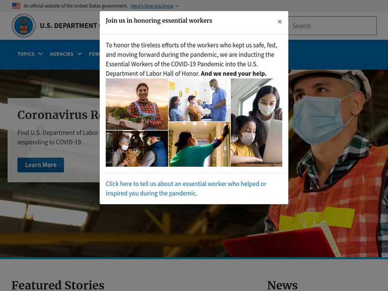 The United States Department of Labor's homepage. Contains information on programs, services, laws, and regulations. Includes a library, newsroom, and guide to DOL agencies.