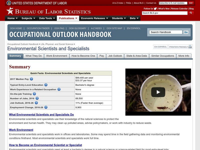 This resource provides occupational information about environmental scientists and specialists.