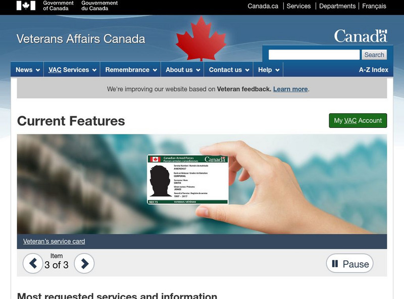 This site is for the dealings of Canadian Veterans. Be sure to check out the Youth & Educators link for School and Community related projects as well as teacher resources.