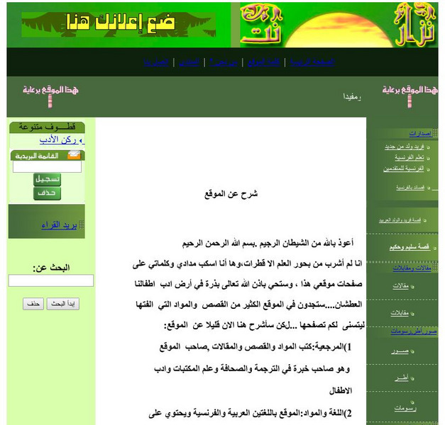 Though most of the short stories here are incomplete (to be completed at a later date), the articles are complete. The author has also included some links to Arabic-language news sites, as well as his own lessons on learning French....