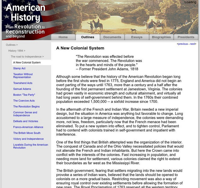 Goes through the various events that led up to the American Revolution and the actions and responses of the British and the Colonies.
