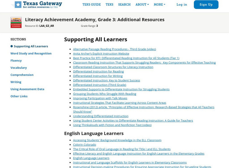 Texas Gateway: Literacy Achievement Academy, Grade 3: Additional Resources