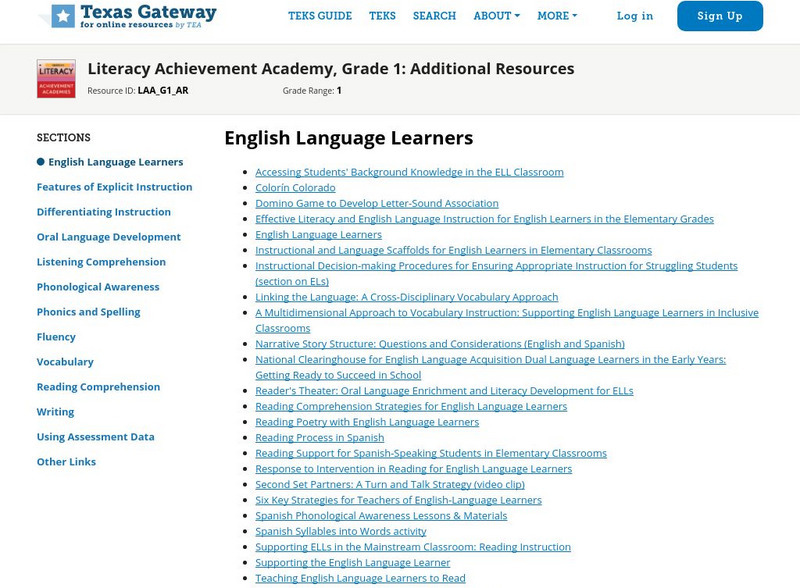 Texas Gateway: Literacy Achievement Academy, Grade 1: Additional Resources