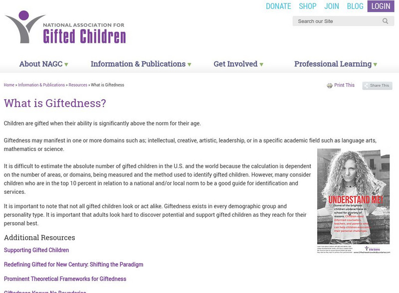 Find various definitions of "gifted" as well as a "brief history of giftedness" and links to more articles exploring the topic in detail.