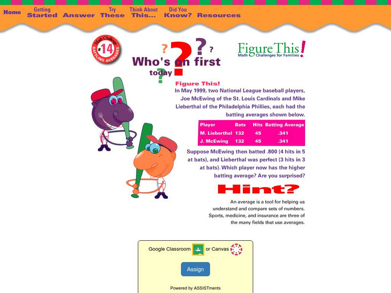 Batter up! Who has the higher batting average, Joe McEwing or Mike Lieberthal? Try your computation and averaging skills in this real-world math challenge. Learn how sharpening your averaging skills can be valuable in real life...