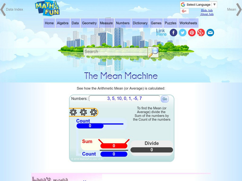 [Free Registration/Login Required] This is a dynamic flipchart displaying and using measures of central tendency- mean, medium, mode, and average. Pictures capture the eye, for sure.