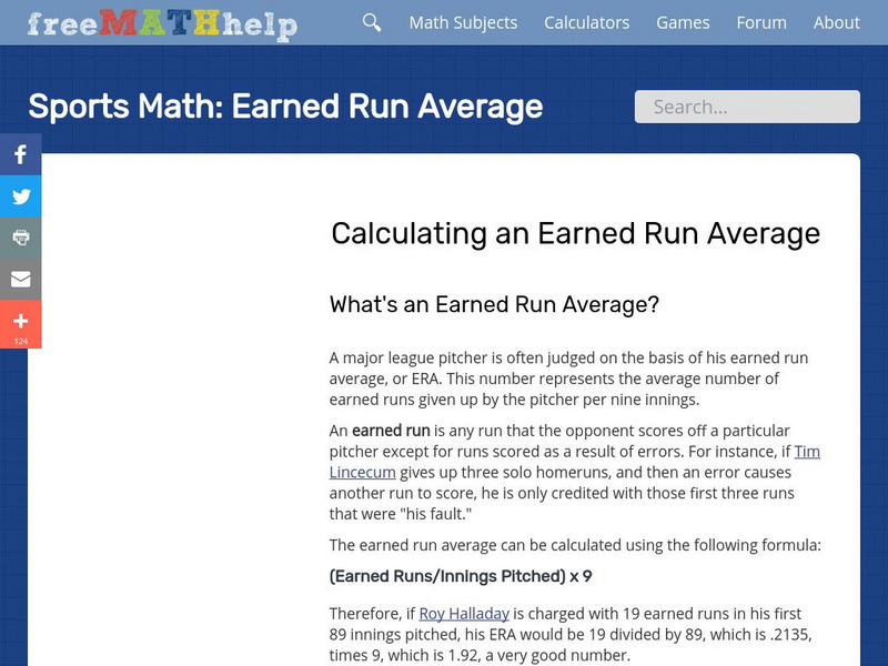 Use these examples and formula to find the earned run average of your favorite baseball pitcher.