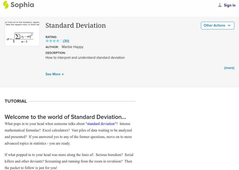 A series of step-by-step worked problems demonstrating how to take a set of data and produce the variance and standard. Hints are provided along the way and the final measures are shown for the user to check.
