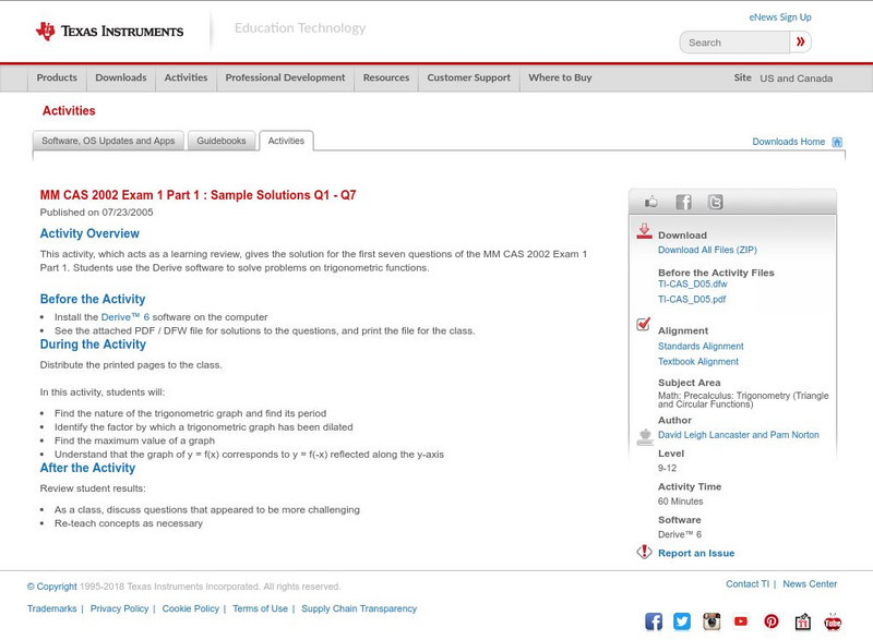 Texas Instruments: Mm Cas 2002 Exam 1 Part 1 : Sample Solutions Q1 & Q7