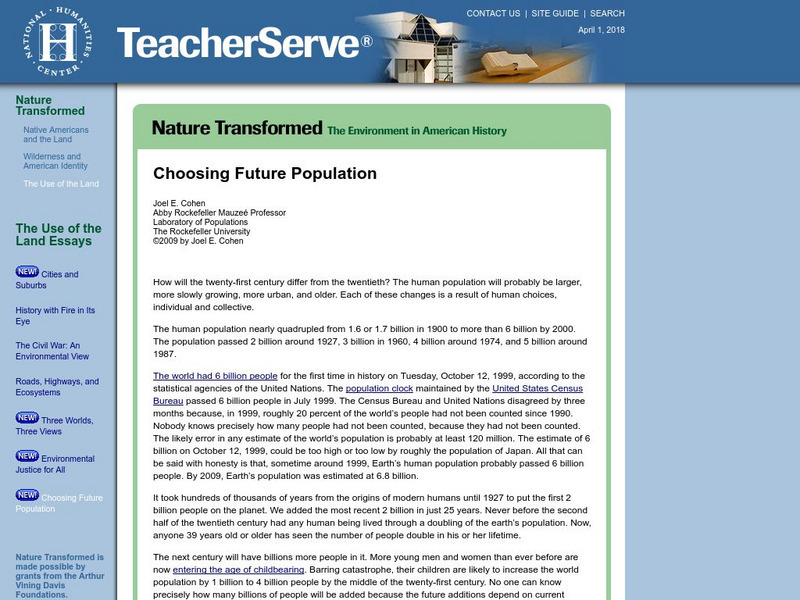National Humanities Center: Teacher Serve: Choosing Future Population