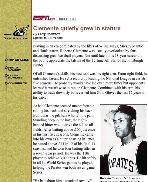 Espn: Clemente Quietly Grew in Stature