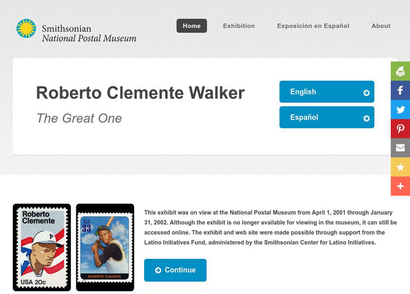 Great reference tool from the National Postal Museum online exhibits for learning about the life of legendary baseball star, Roberto Clemente, who was honored twice with a postage stamp in his memory. Includes images of memorabilia and...