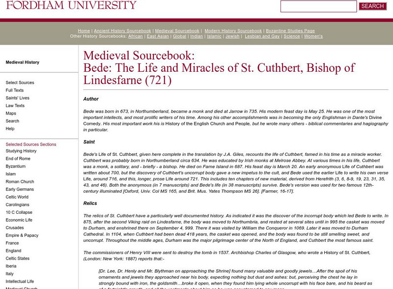 Fordham University: Medieval Sourcebook: Bede Life of St. Cuthbert