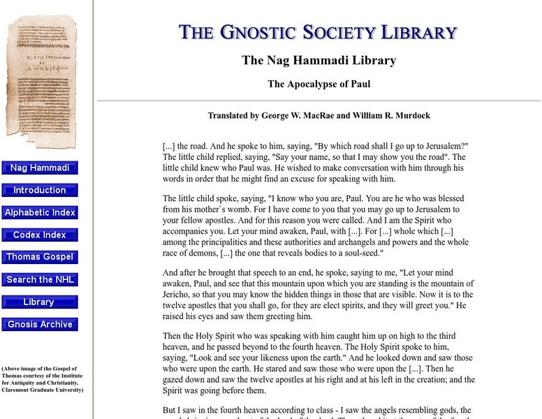 The complete text of the written work as discovered in Egypt, part of the famous "Nag Hammadi" find (a large collection of books found in the Egyptian desert and some of the earliest texts ever found).