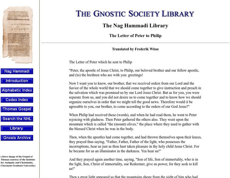 The complete text of the letter in which Peter is describing the teachings and words of Jesus. This is the earliest version of the letter available, it was found as part of the Nag Hammadi library.